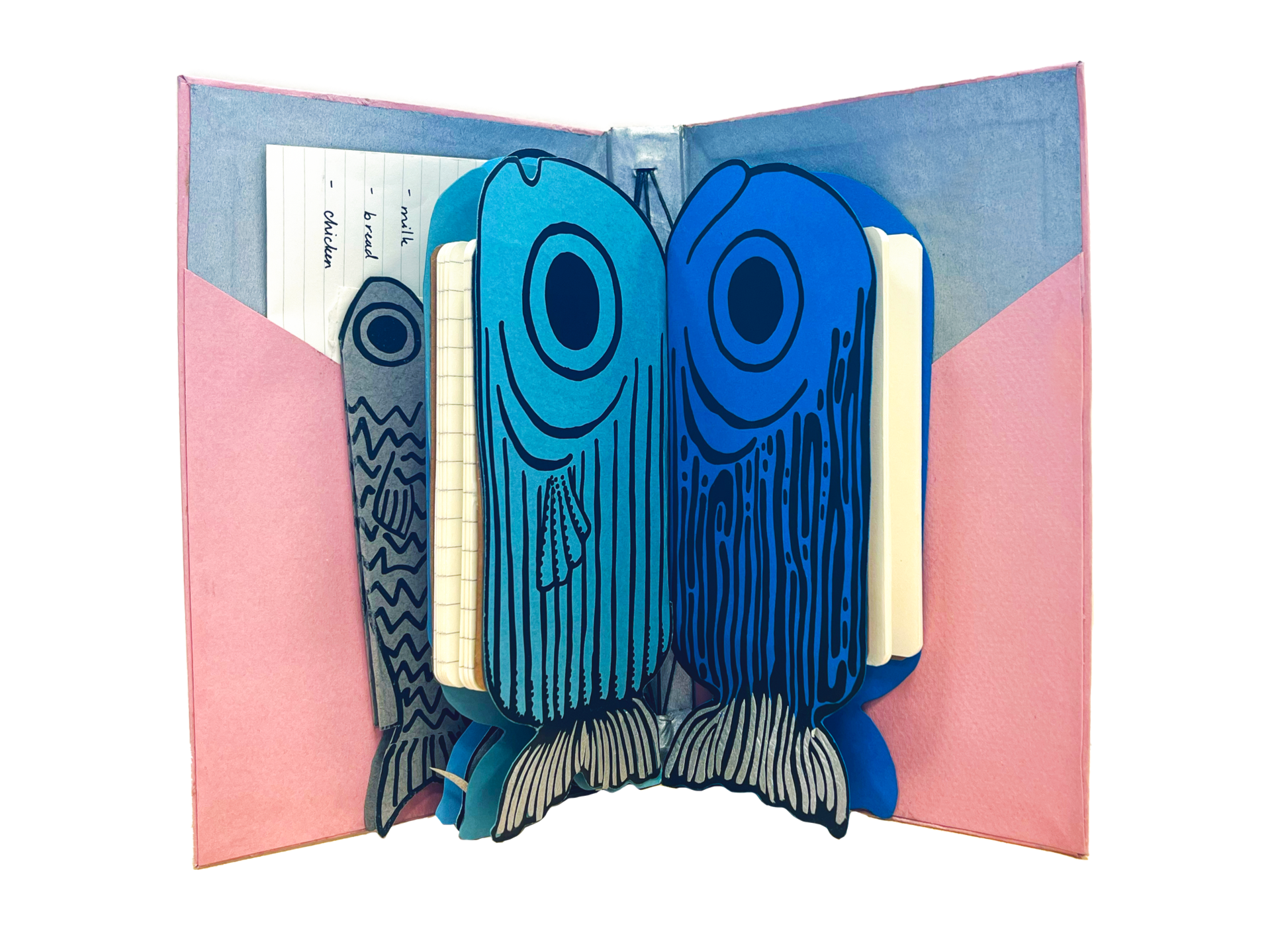 “Salty Notes” is a fresh take on the classic traveler’s journal: a folding cover with removable notebook inserts that one can customize and rearrange. Created from a desire to bring joy and inspiration back to schoolwork and productivity, this notebook offers the user a delightfully cute and functional space to jot down thoughts, tasks, or moments from your day.