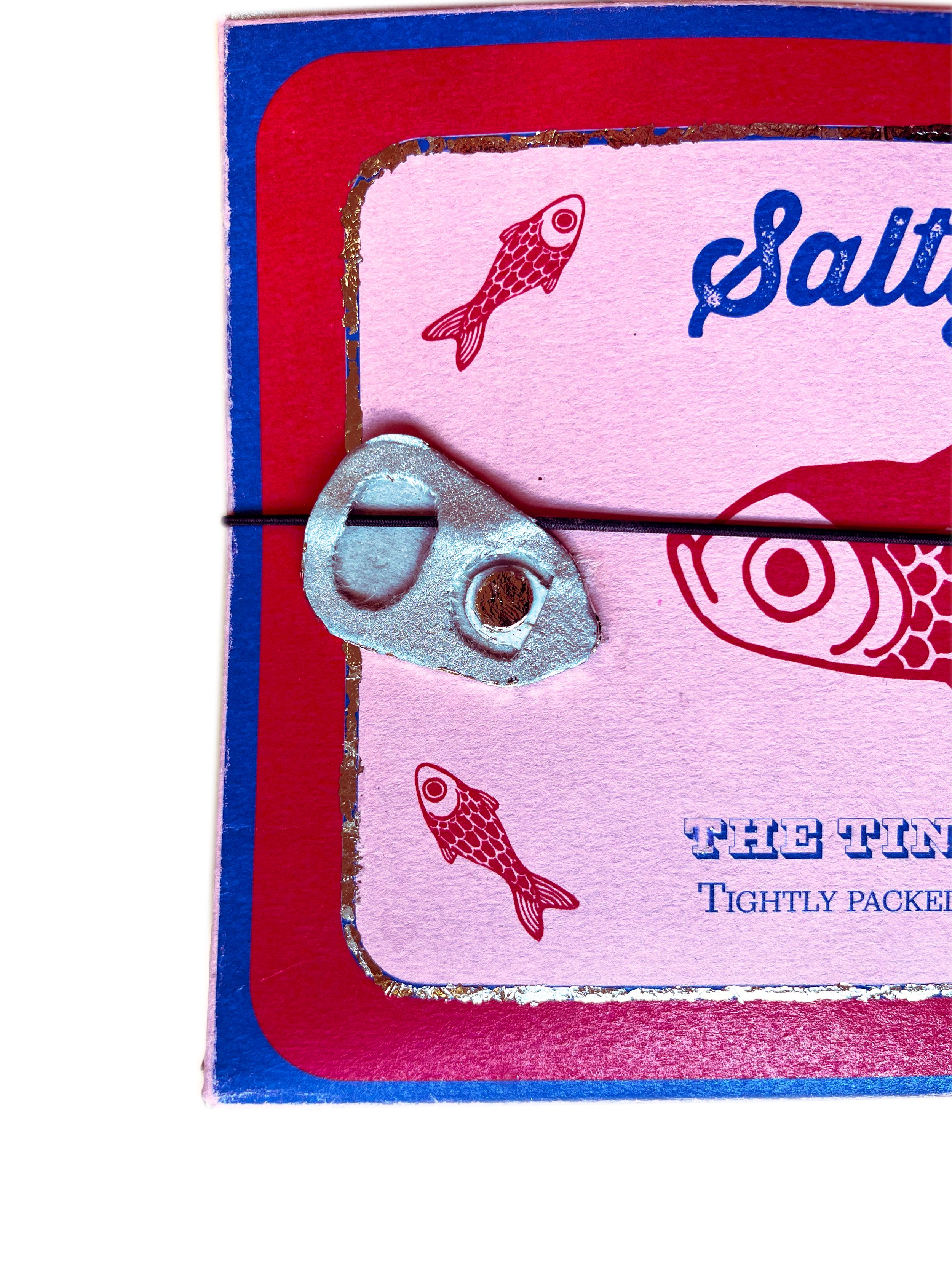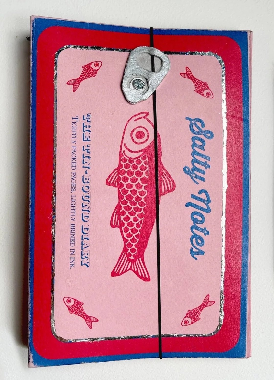 In its finished form, “Salty Notes” comes with four inserts including pocket, blank, ruled, and gridded, as well as internal pockets for loose pages or mementos. The inserts can be swapped out or removed for added functionality and reusability. Finally, the cover is held closed by an elastic clasp that mimics the pull tab on a can.